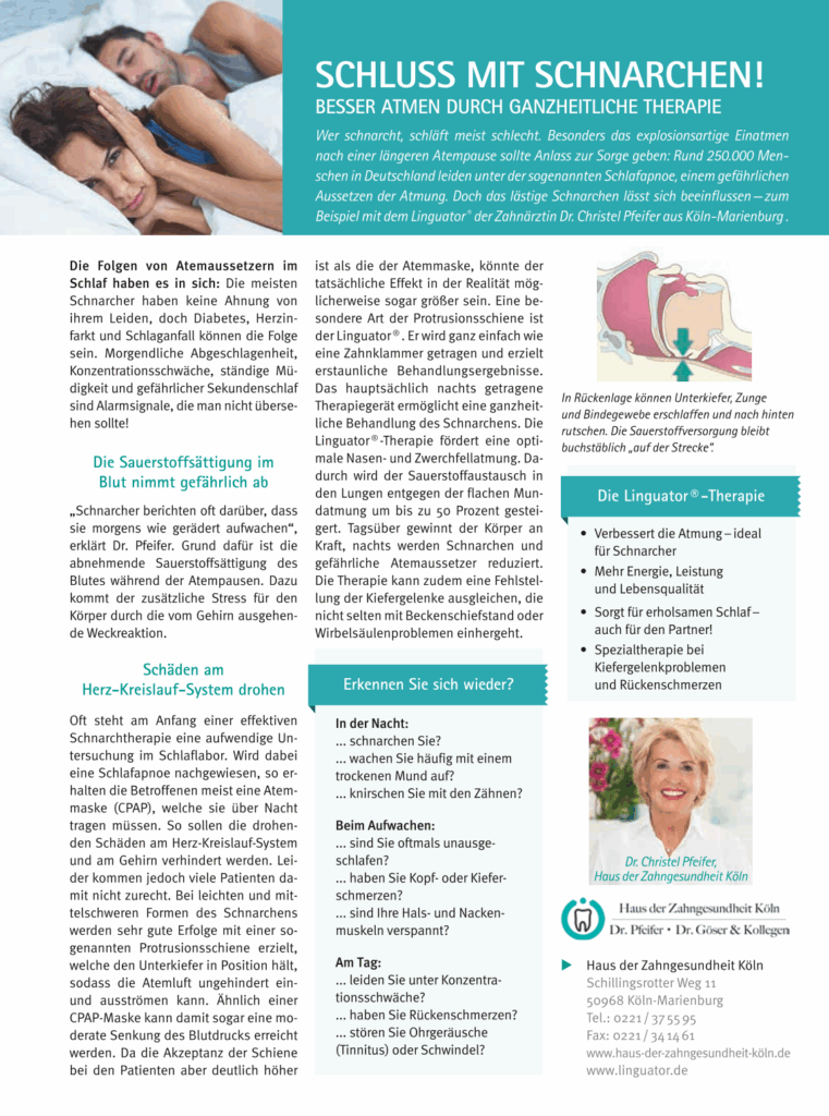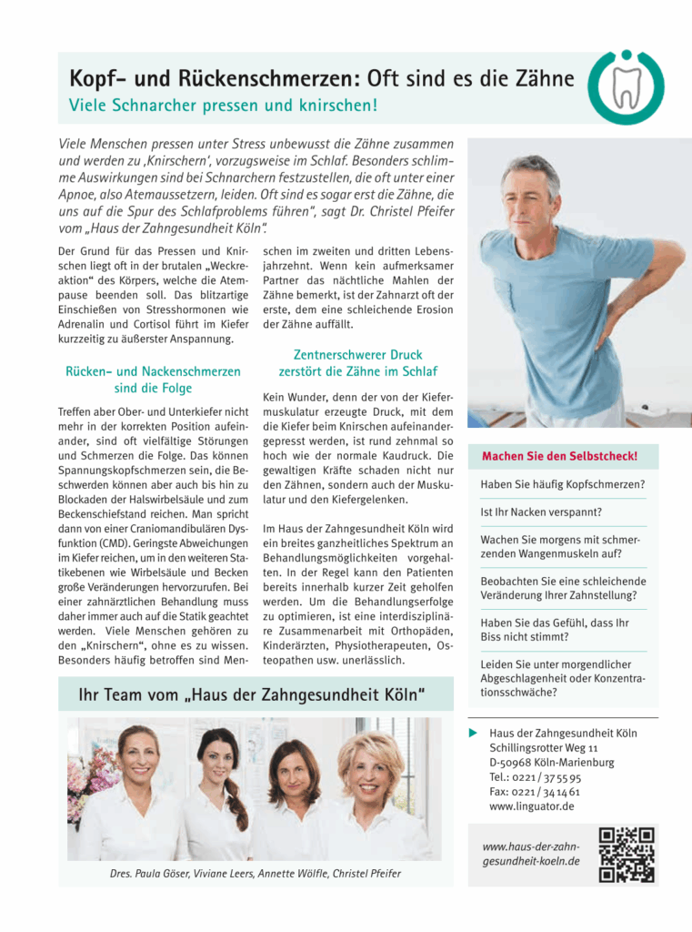 Ratgeber: Schnarchen, Kopfschmerzen, Rückenbeschwerden – Ganzheitliche Zahnmedizin kann helfen